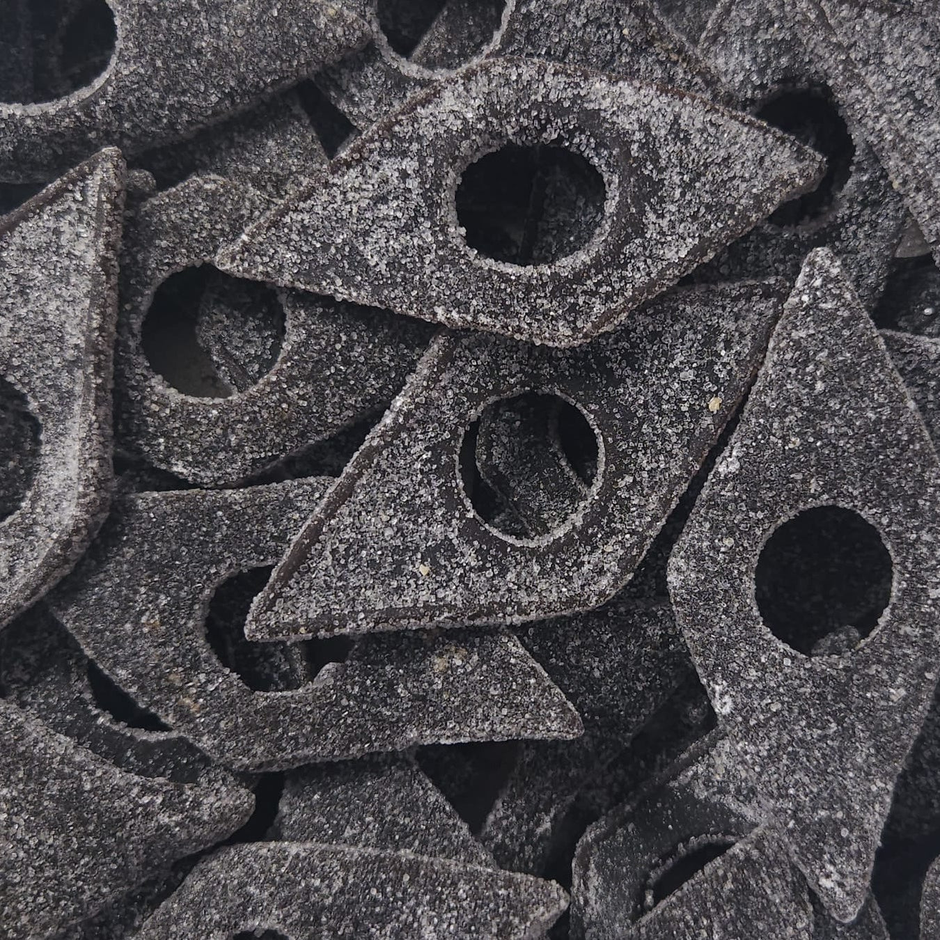 Suiker, glucosestroop, zetmeel, gemodificeerd zetmeel, salmiakzout, zoethoutwortelextract, gekaramelliseerde suiker, zout, anijsolie